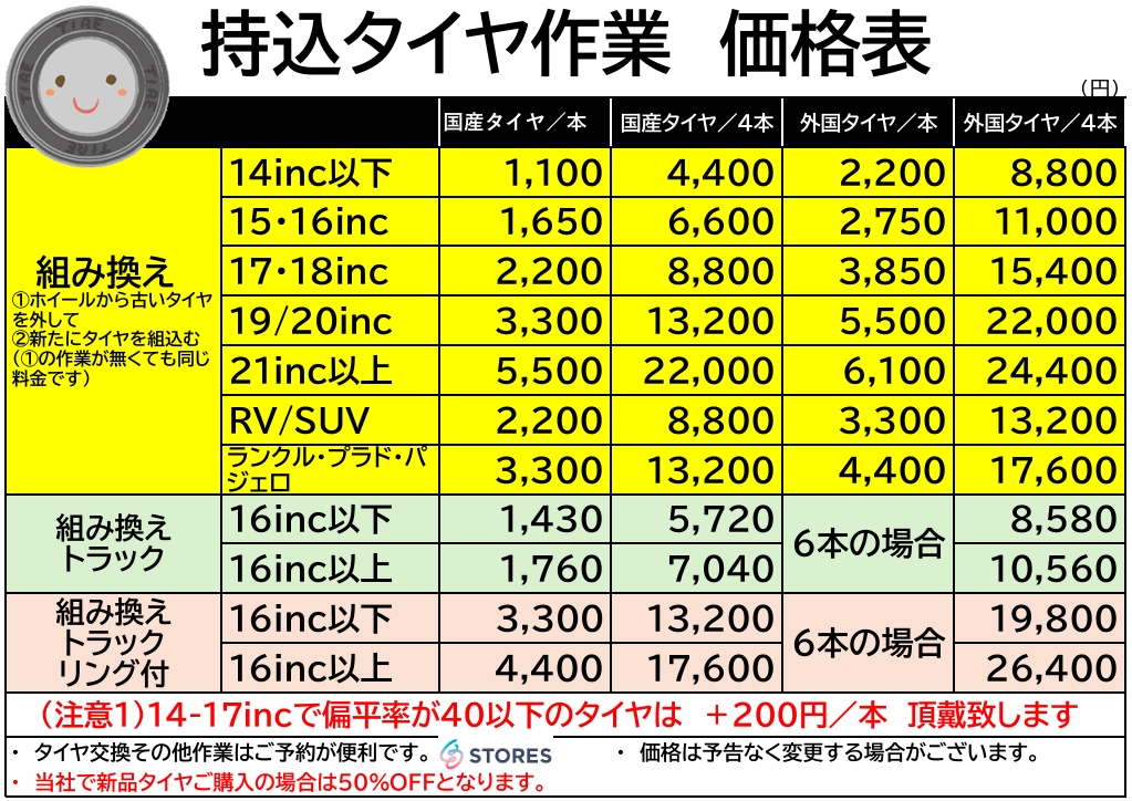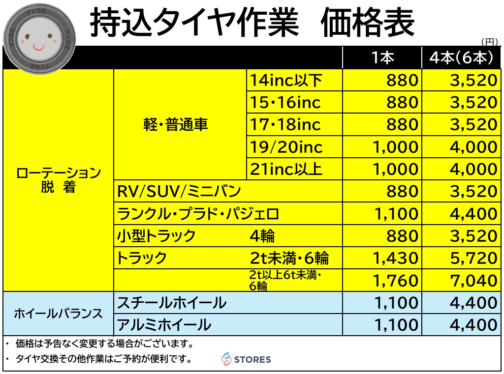 ※ 4ナンバー、1ナンバーのお車は店頭にてご相談ください。